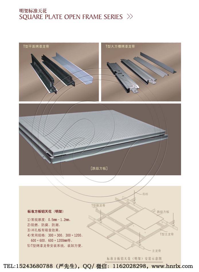 鋁單板、鋁天花、鋁板幕墻、鋁扣板、掛片天花、鋁方通、條扣天花、格柵天花、方板天花、Z型勾搭龍骨、A字龍骨、型材方通龍骨、輕鋼龍骨、烤漆龍骨、圓管天花